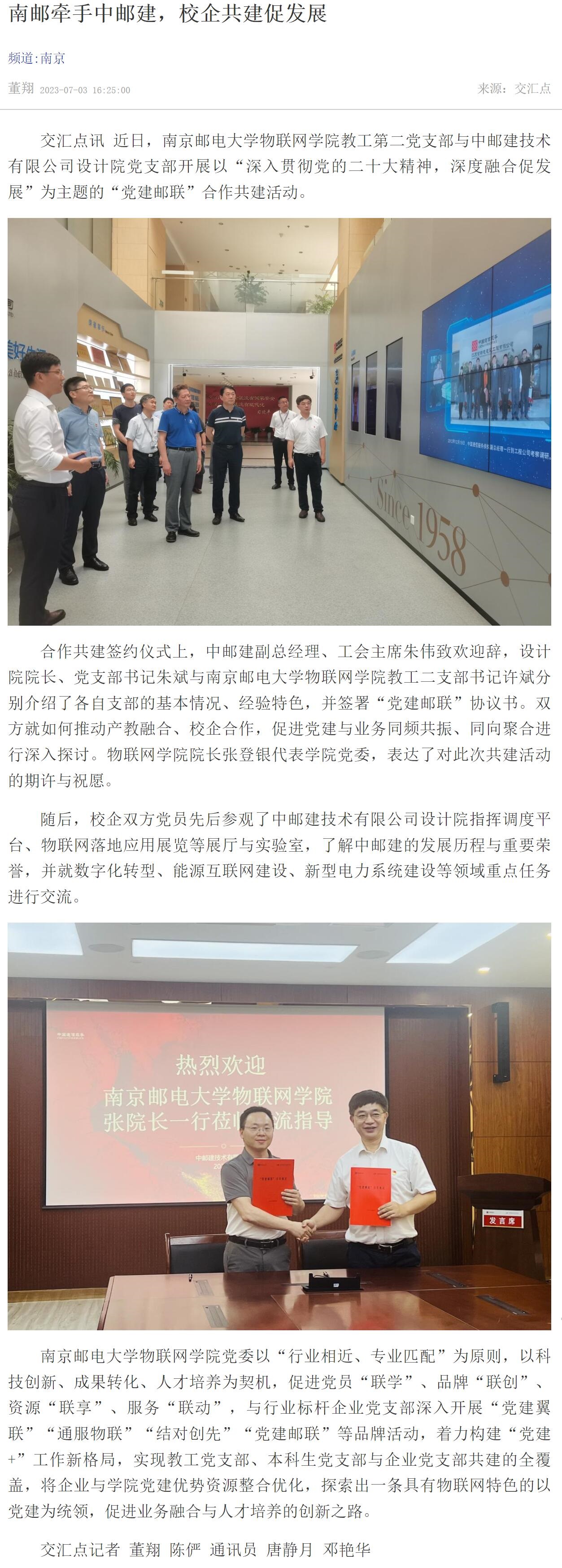 【新华日报客户端】南邮牵手中邮建,校企共建促发展
