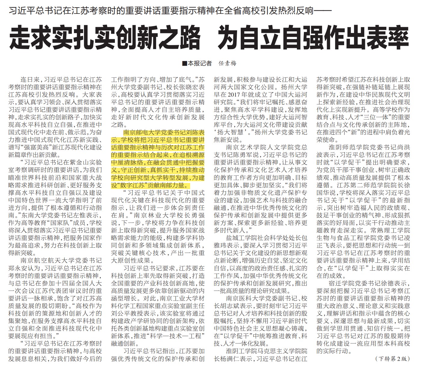 【江苏教育报】走求实扎实创新之路 为自立自强作出表率