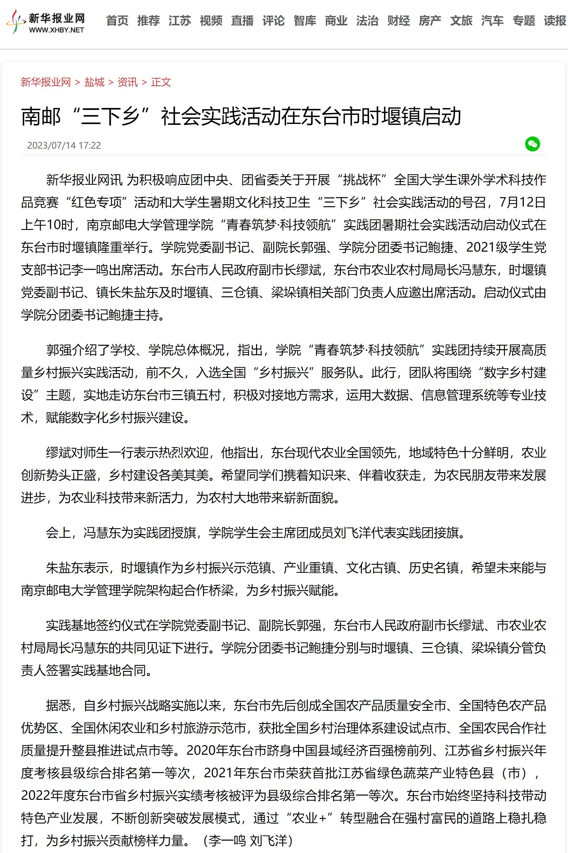 【新华报业网】南邮“三下乡”社会实践活动在东台市时堰镇启动