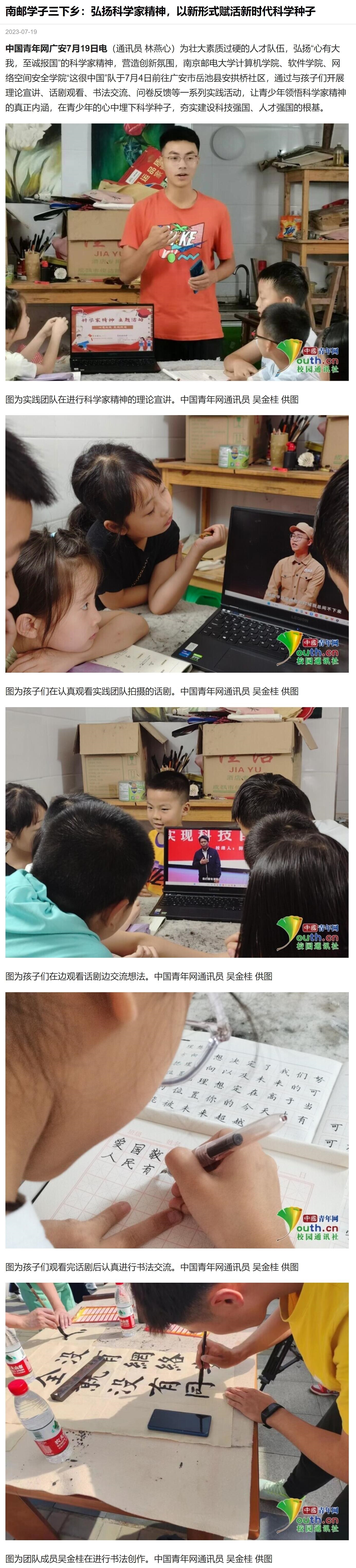 【中国青年网】南邮学子三下乡:弘扬科学家精神,以新形式赋活新时代科学种子