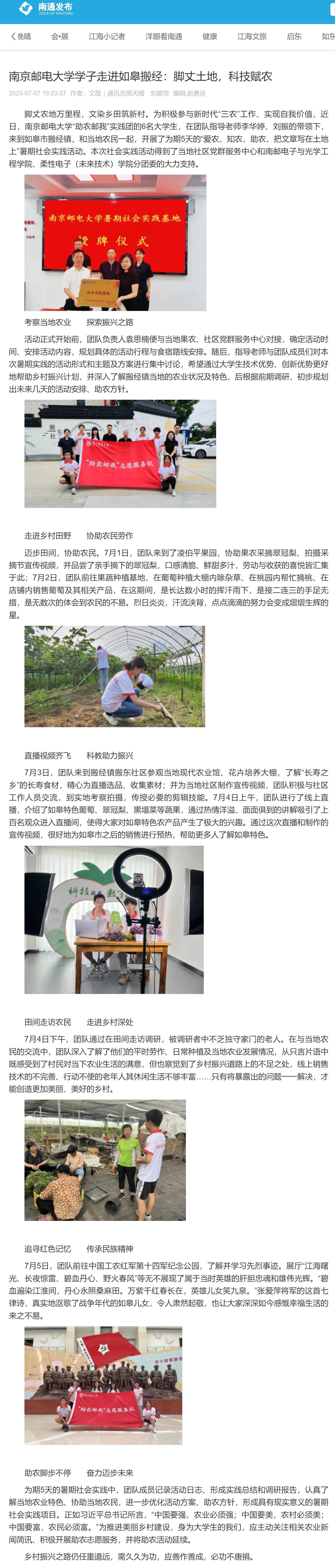 【南通日报客户端】南京邮电大学学子走进如皋搬经:脚丈土地,科技赋农