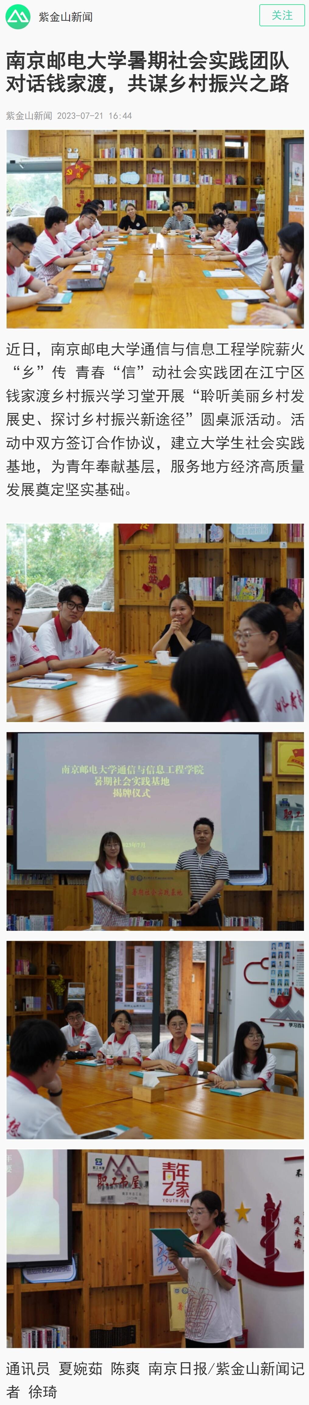 【南京日报客户端】南京邮电大学暑期社会实践团队对话钱家渡,共谋乡村振兴之路