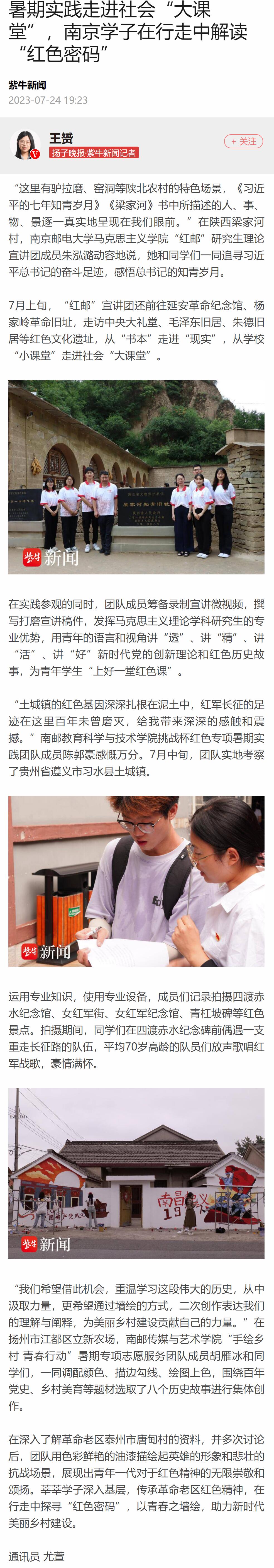 【扬子晚报客户端】暑期实践走进社会“大课堂”,南京学子在行走中解读“红色密码”