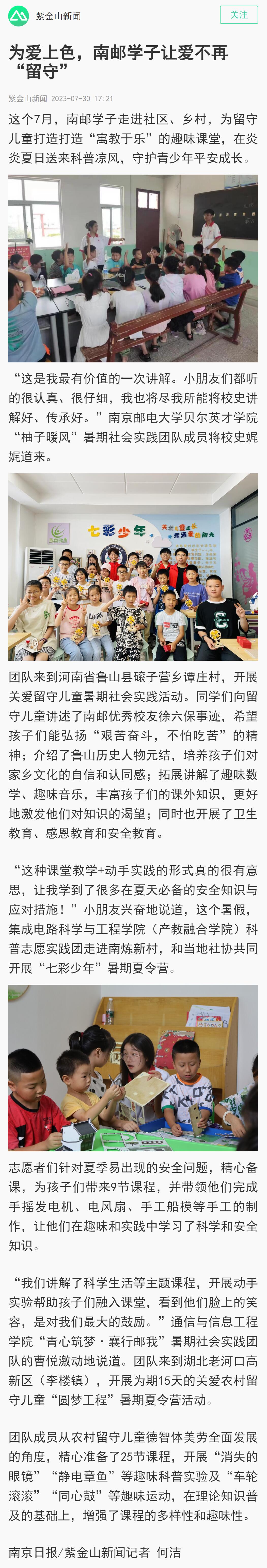 【南京日报客户端】为爱上色,南邮学子让爱不再“留守”