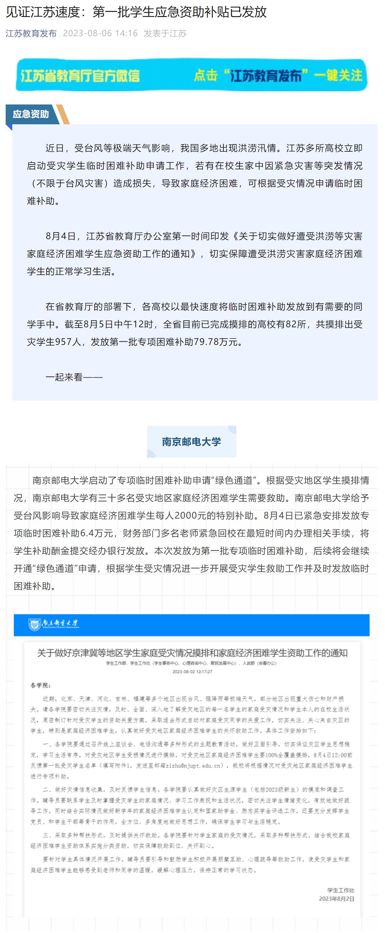 【省教育厅官微】见证江苏速度:第一批学生应急资助补贴已发放