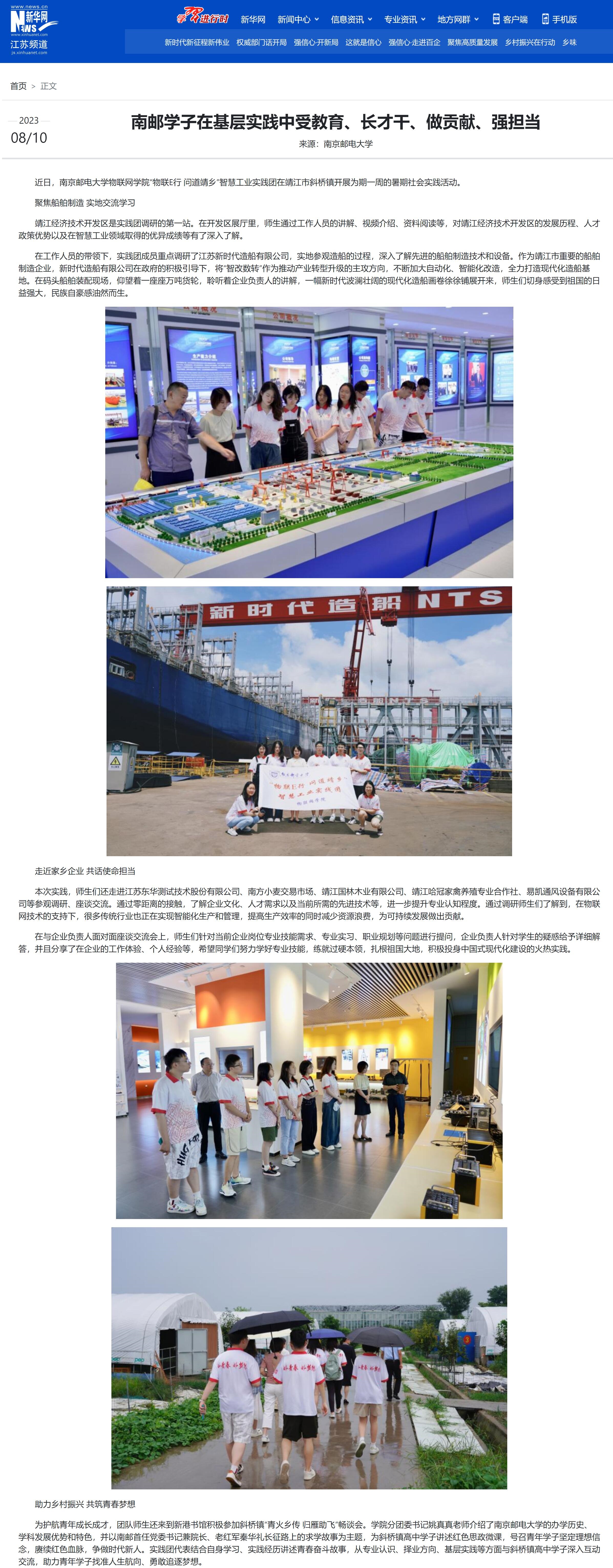 【新华网】南邮学子在基层实践中受教育、长才干、做贡献、强担当