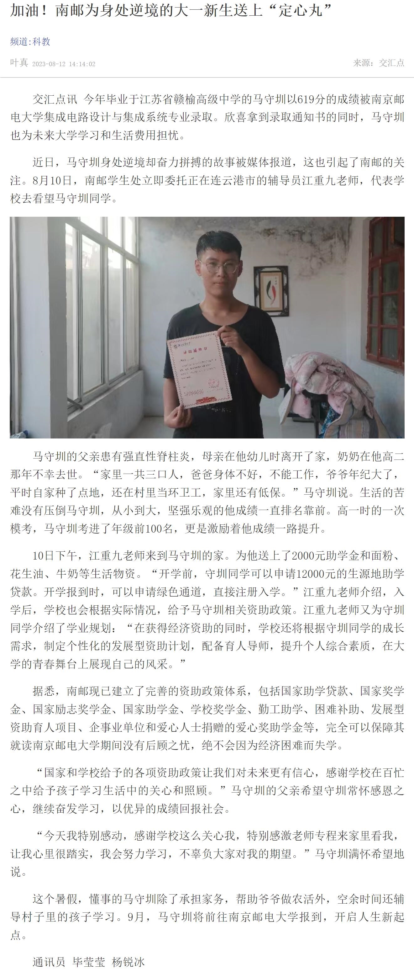 【新华日报客户端】加油!南邮为身处逆境的大一新生送上“定心丸”
