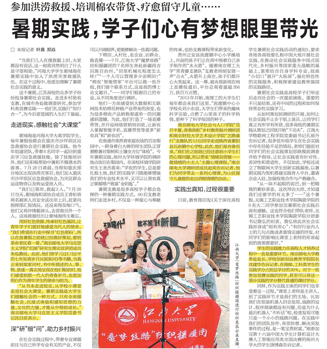 【新华日报】暑期实践,学子们心有梦想眼里带光