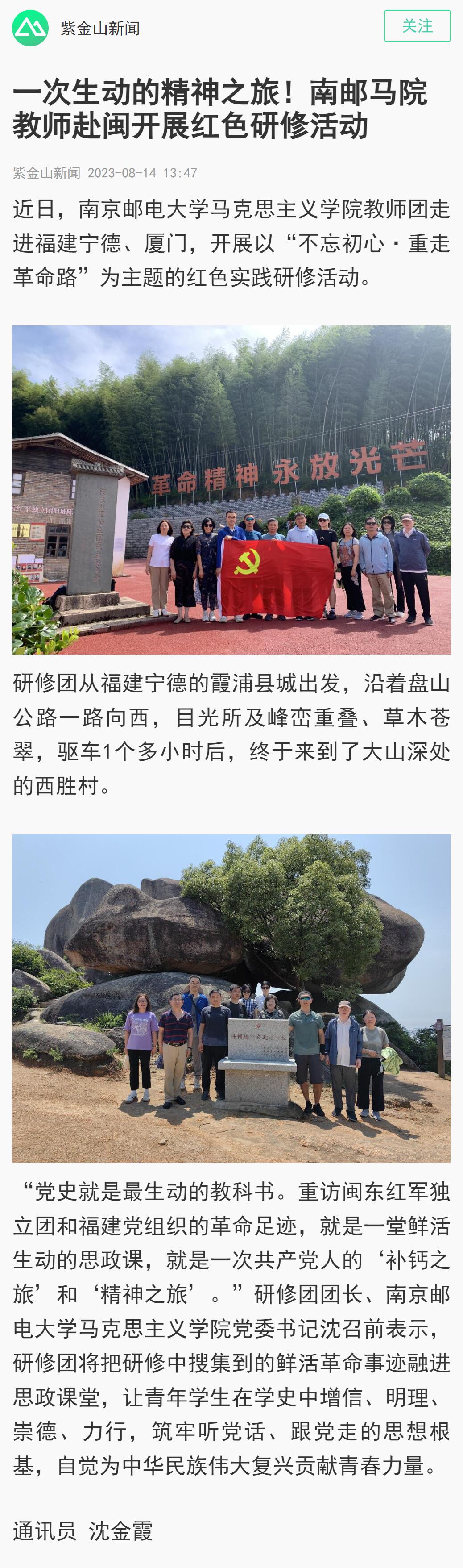 【南京日报客户端】一次生动的精神之旅!南邮马院教师赴闽开展红色研修活动