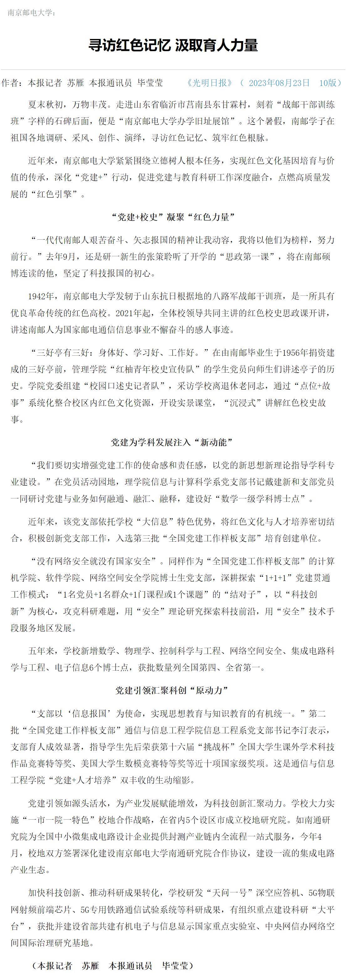 【光明日报】南京邮电大学:寻访红色记忆 汲取育人力量