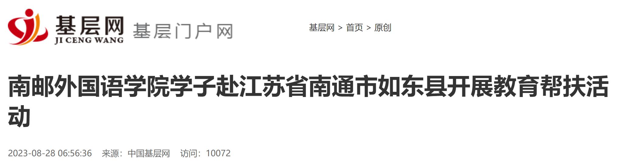 【中国基层网】南邮外国语学院学子赴江苏省南通市如东县开展教育帮扶活动