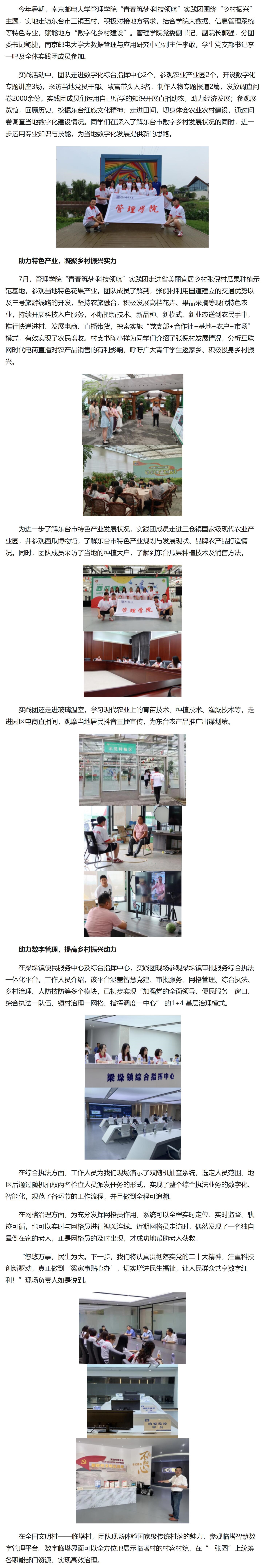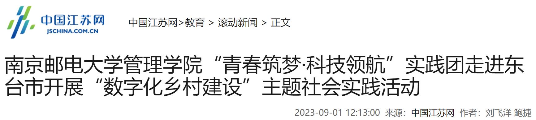 【中国江苏网】南京邮电大学管理学院“青春筑梦·科技领航”实践团走进东台市开展“数字化乡村建设”主题社会实践活动