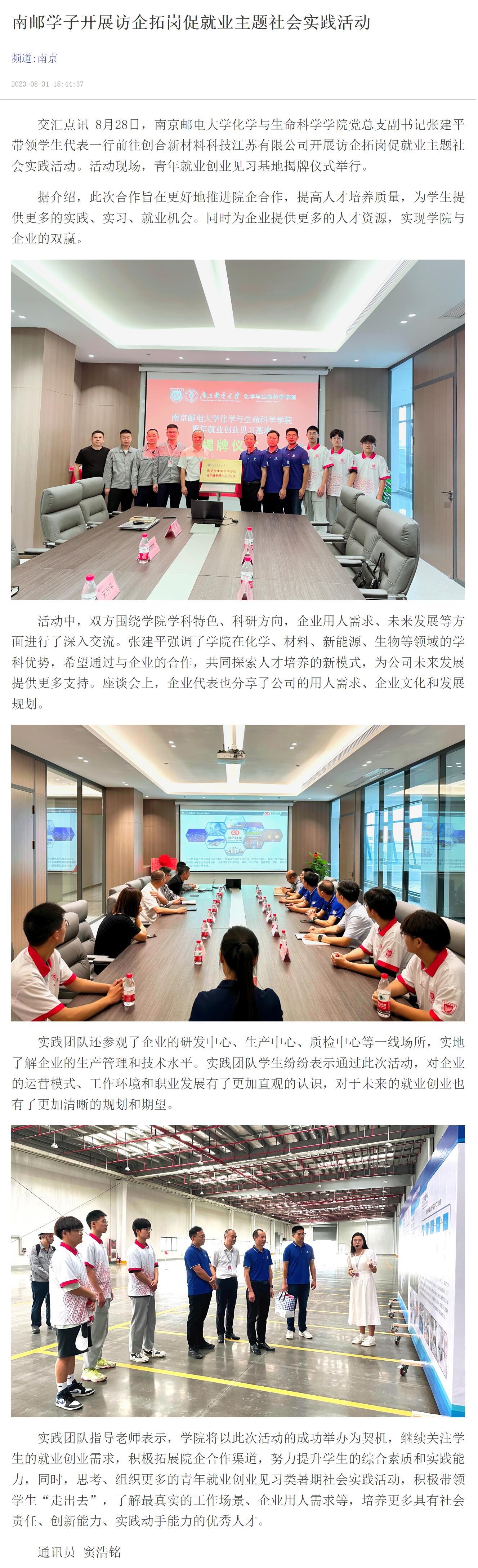 【新华日报客户端】南邮学子开展访企拓岗促就业主题社会实践活动