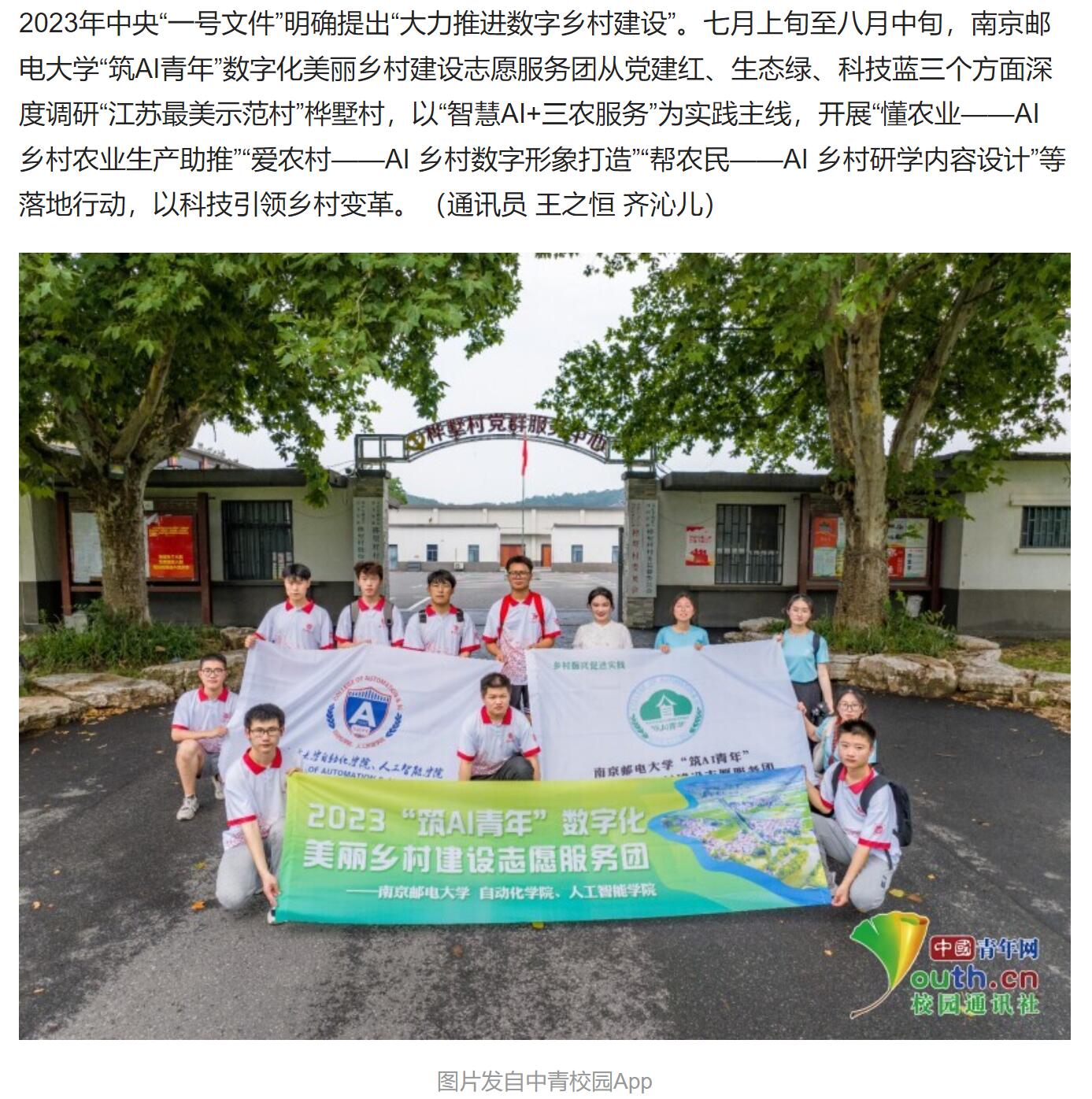 【中国青年网】南邮学子“智慧AI+三农服务”,多措并举建设数字化美丽乡村