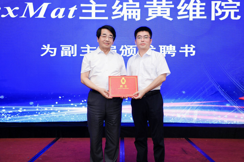 启动仪式结束后,叶美兰校长为FlexMat主编黄维院士颁发聘书。FlexMat主编、黄维院士为期刊共同主编、执行主编、副主编颁发聘书。
