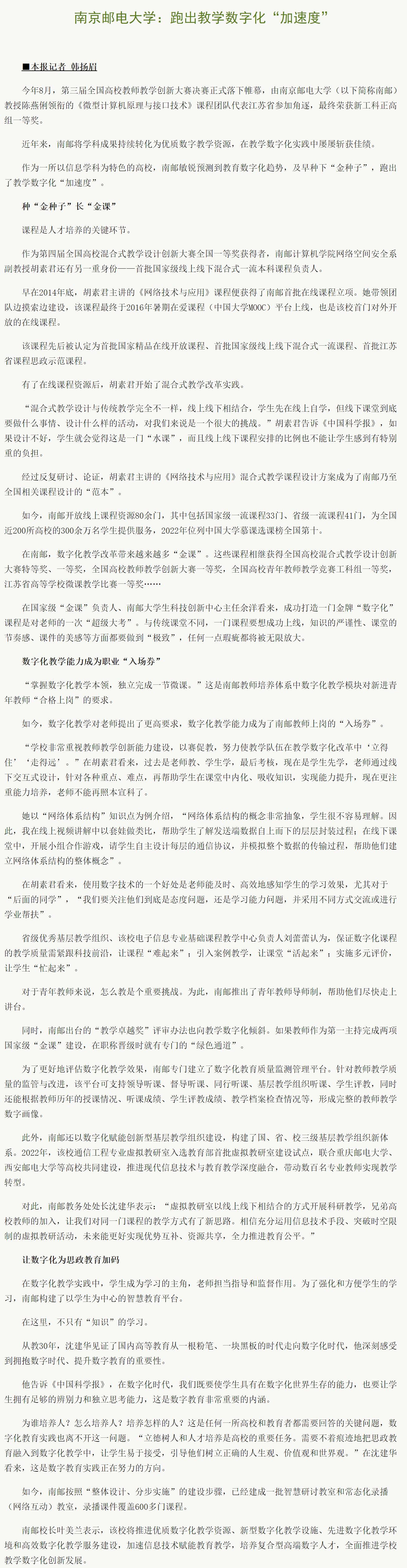 【中国科学报】南京邮电大学:跑出教学数字化“加速度”