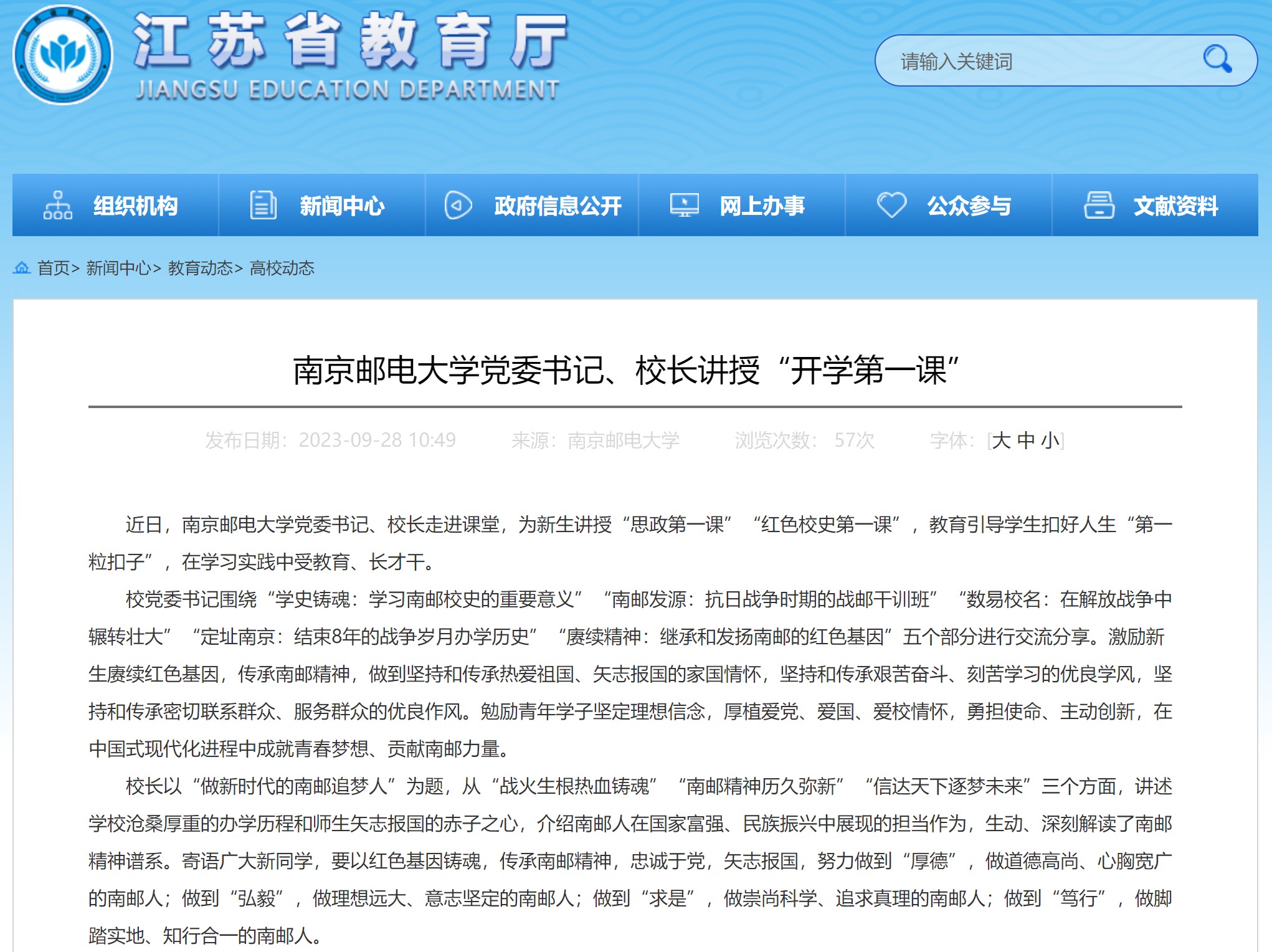 【省教育厅官网】南京邮电大学党委书记、校长讲授“开学第一课”
