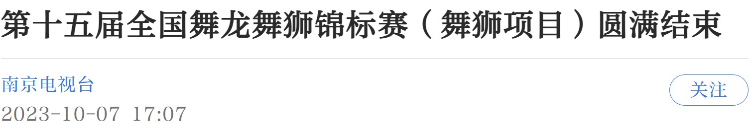 【南京电视台】第十五届全国舞龙舞狮锦标赛(舞狮项目)圆满结束