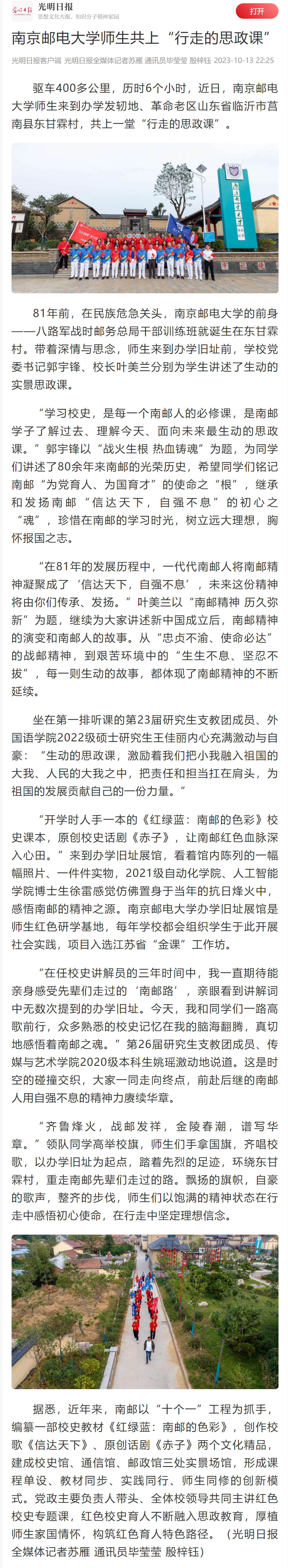 【光明日报客户端】南京邮电大学师生共上“行走的思政课”
