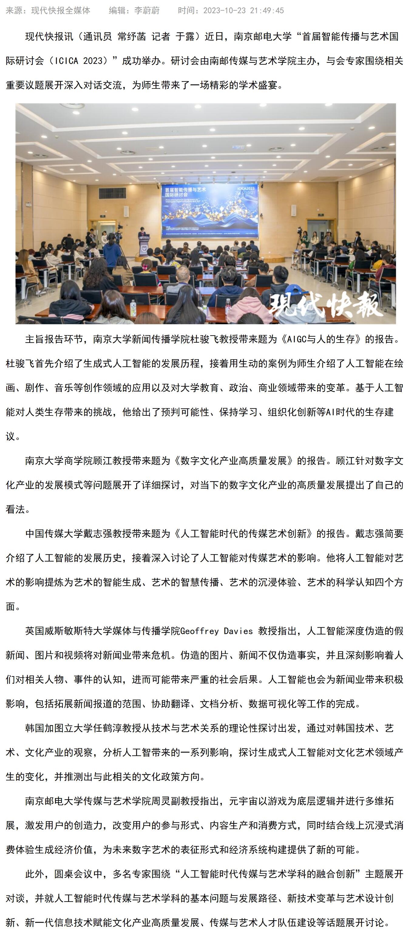 【现代快报全媒体】首届智能传播与艺术国际研讨会在南京举办,专家学者带来精彩分享