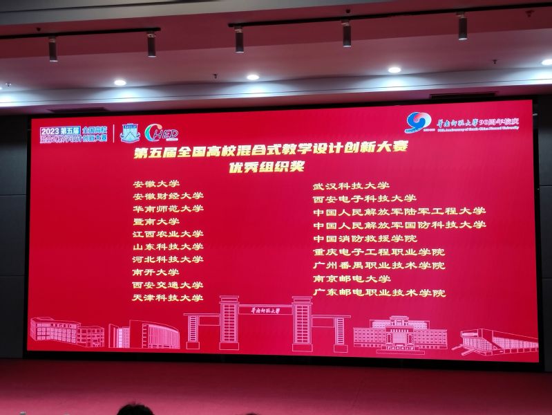 11月12日,2023年第五届全国高校混合式教学设计创新大赛落下帷幕,计算机学院、软件学院、网络空间安全学院陈燕俐老师课程团队和管理学院徐侠老师课程团队荣获全国一等奖,社会与人口学院周晶晶老师获全国二等奖、安荣荣老师获全国三等奖,我校获优秀组织奖。