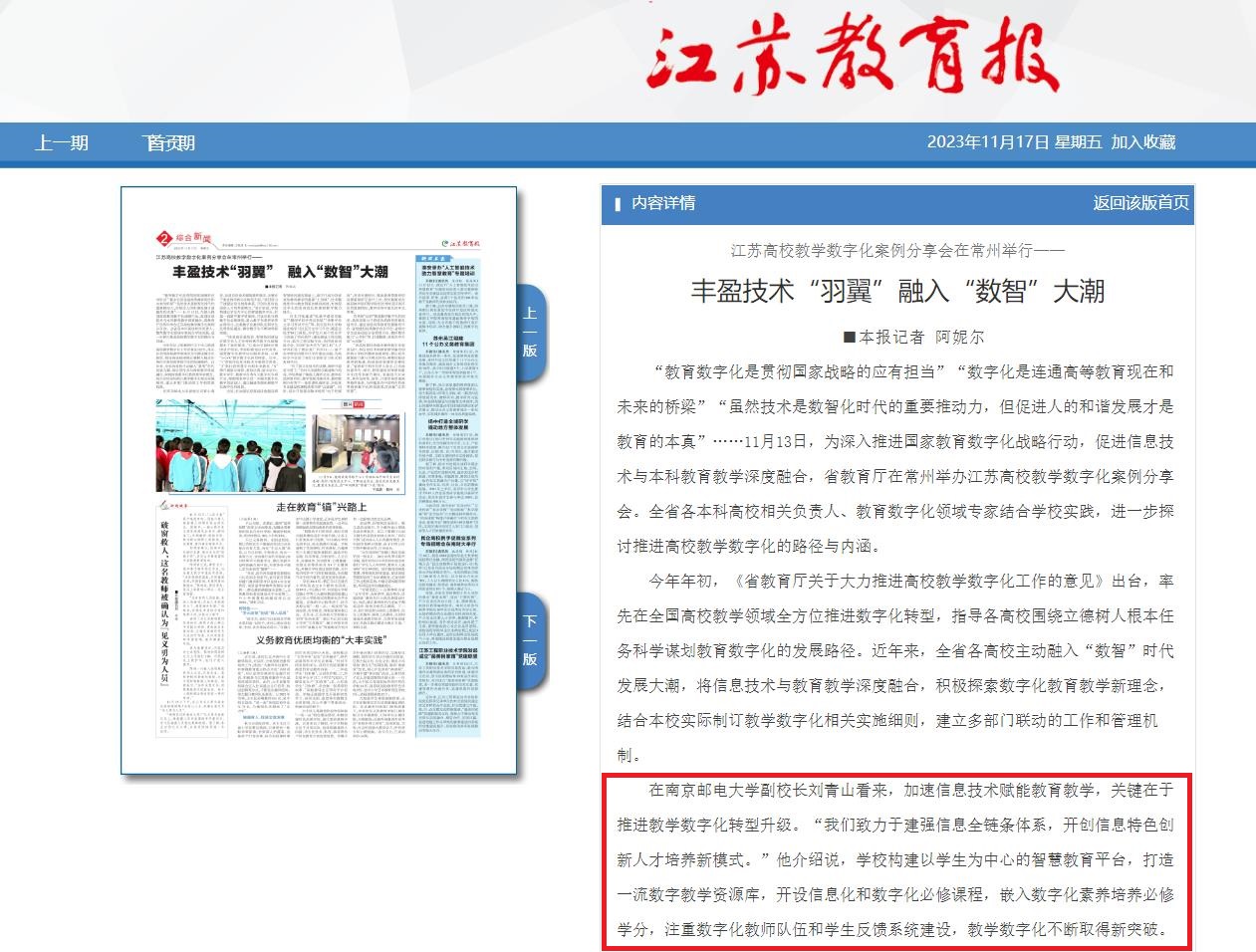 【江苏教育报】丰盈技术“羽翼” 融入“数智”大潮