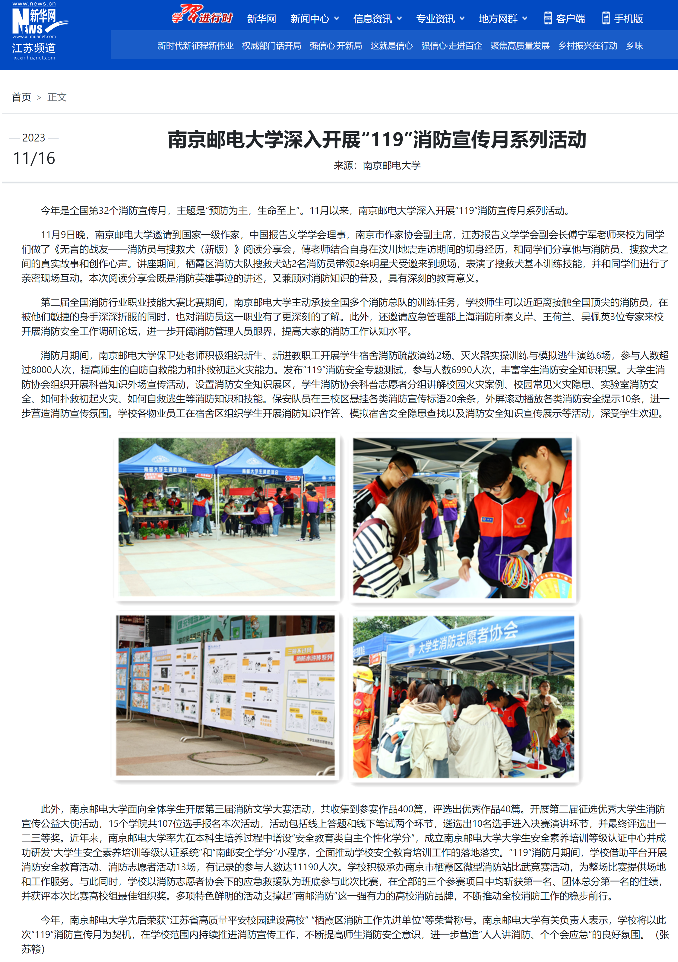 【新华网】南京邮电大学深入开展“119”消防宣传月系列活动
