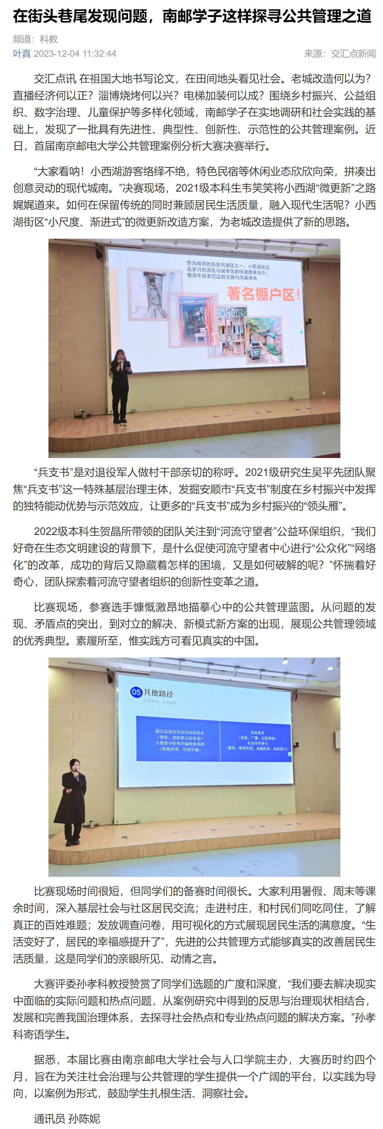 【新华日报客户端】在街头巷尾发现问题,南邮学子这样探寻公共管理之道