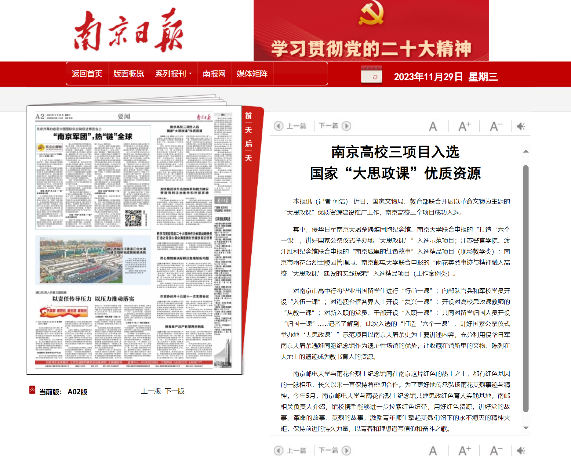 【南京日报】南京高校三项目入选国家“大思政课”优质资源