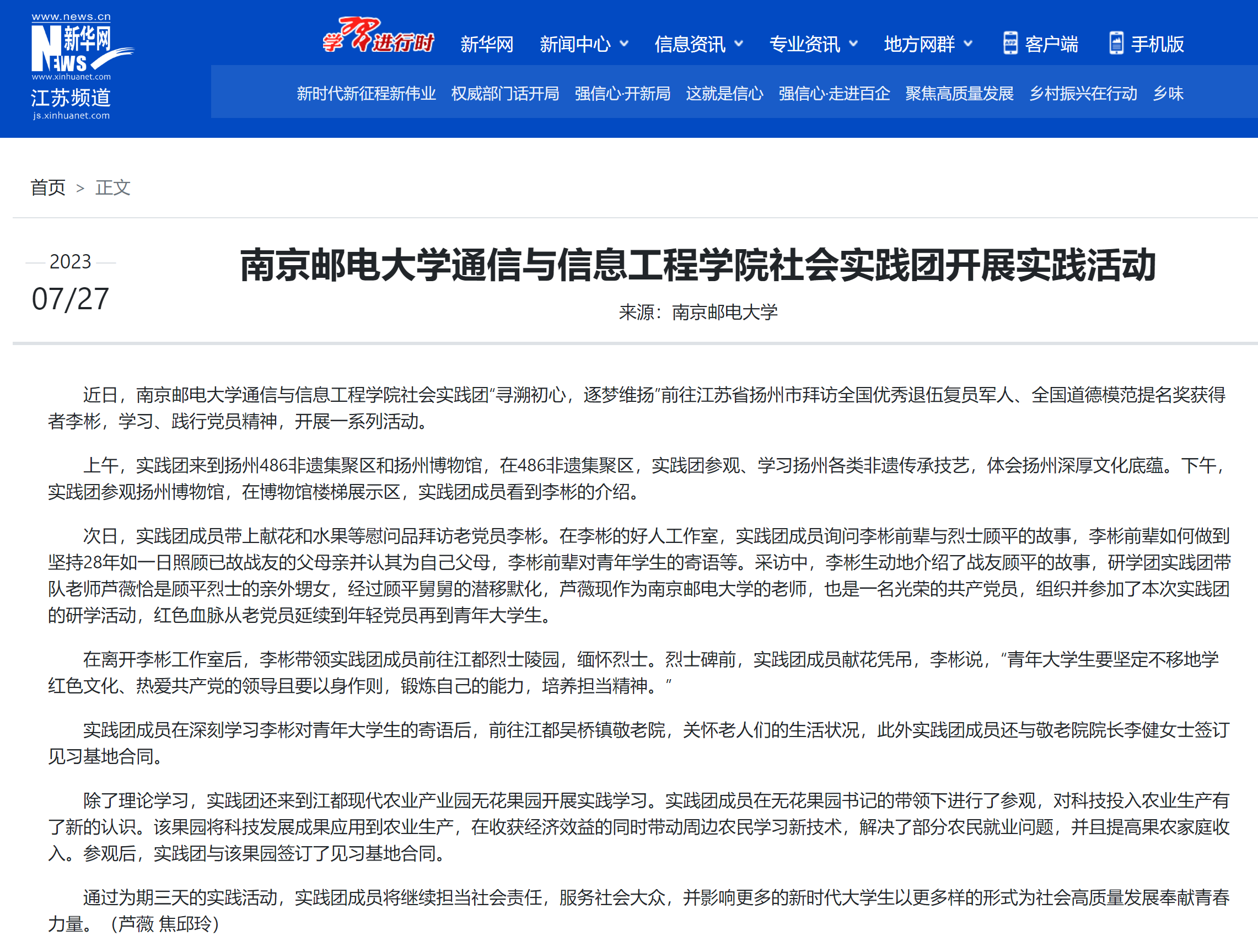 【新华网】南京邮电大学通信与信息工程学院社会实践团开展实践活动