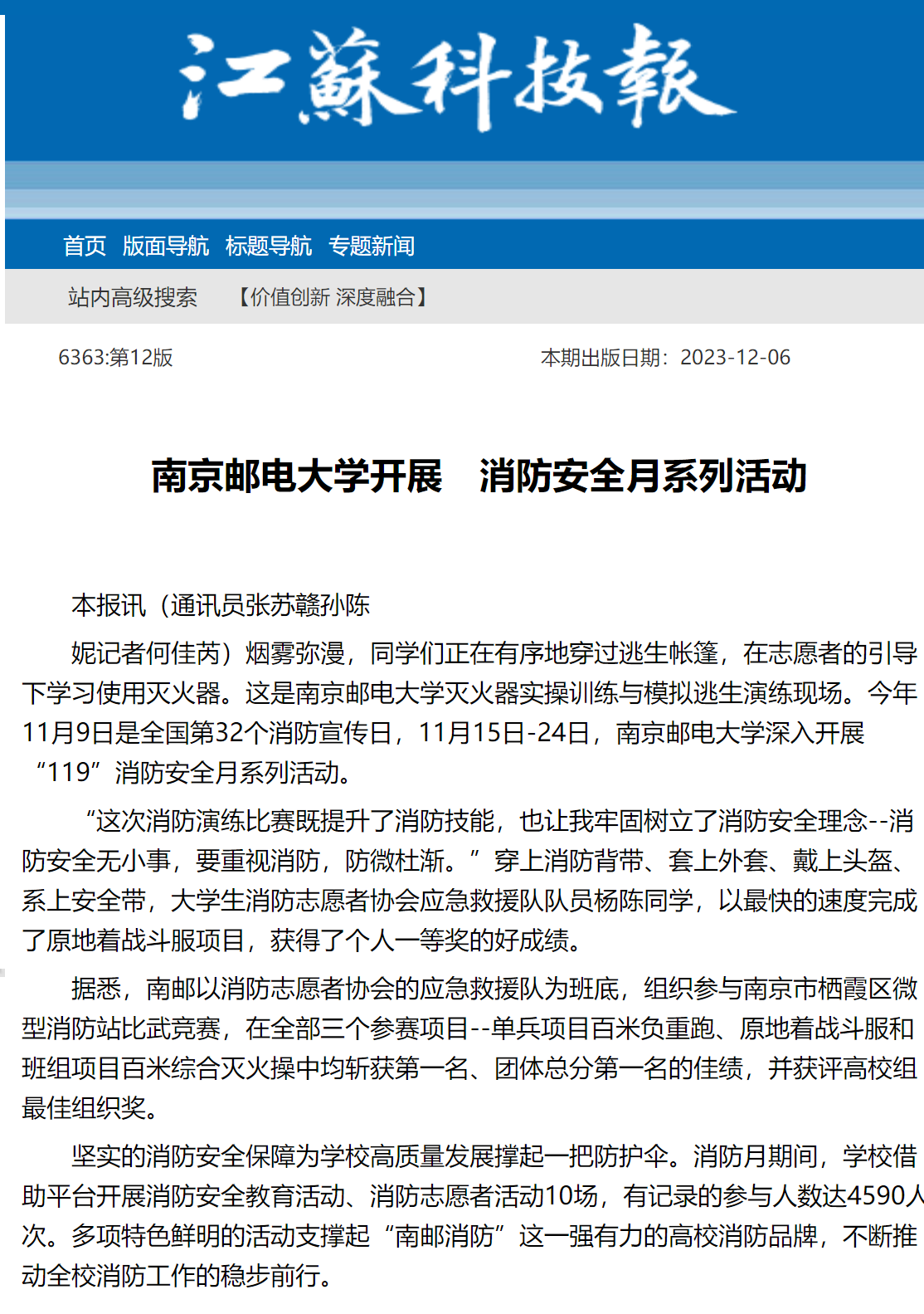 【江苏科技报】南京邮电大学开展 消防安全月系列活动