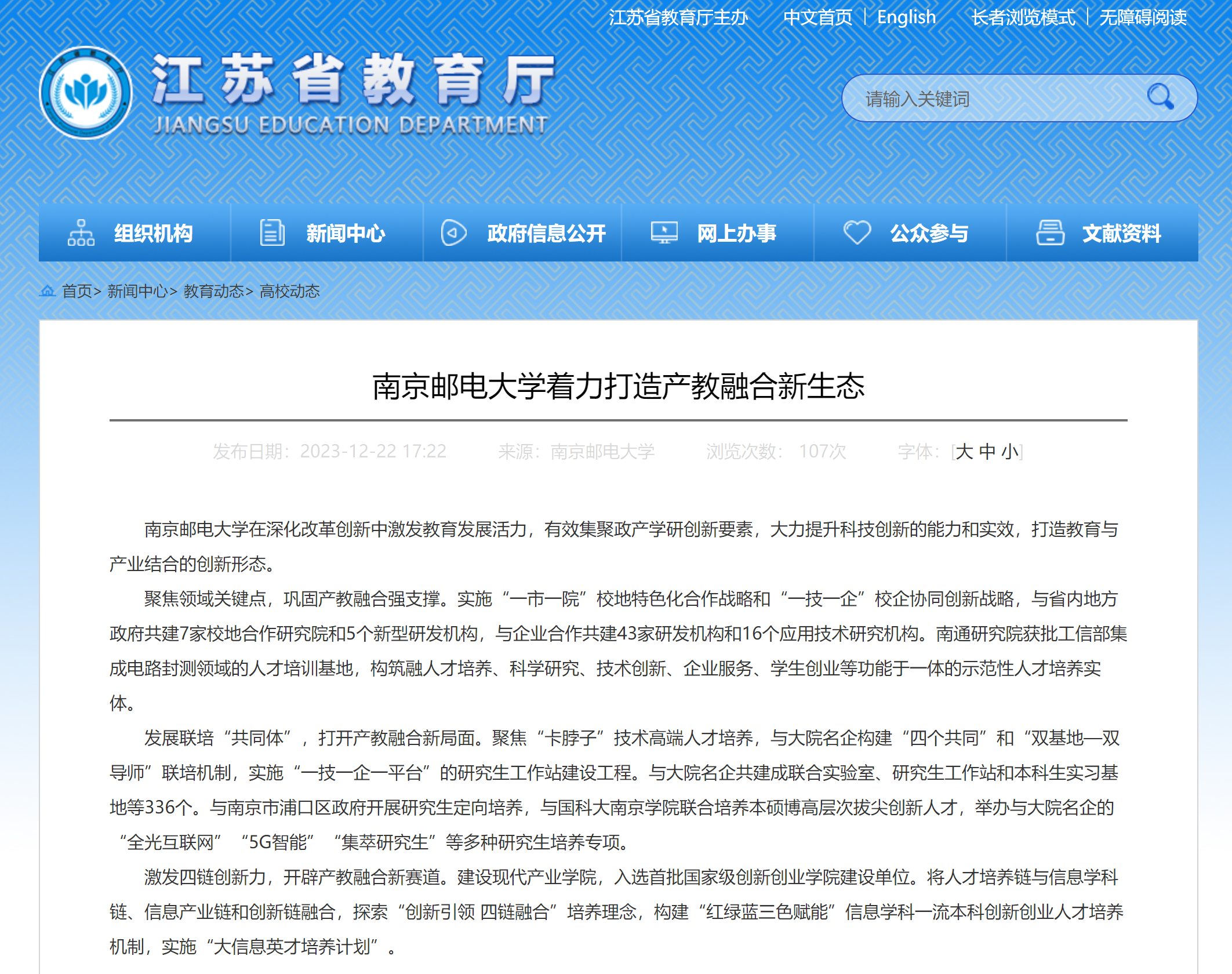 【省教育厅官网】南京邮电大学着力打造产教融合新生态