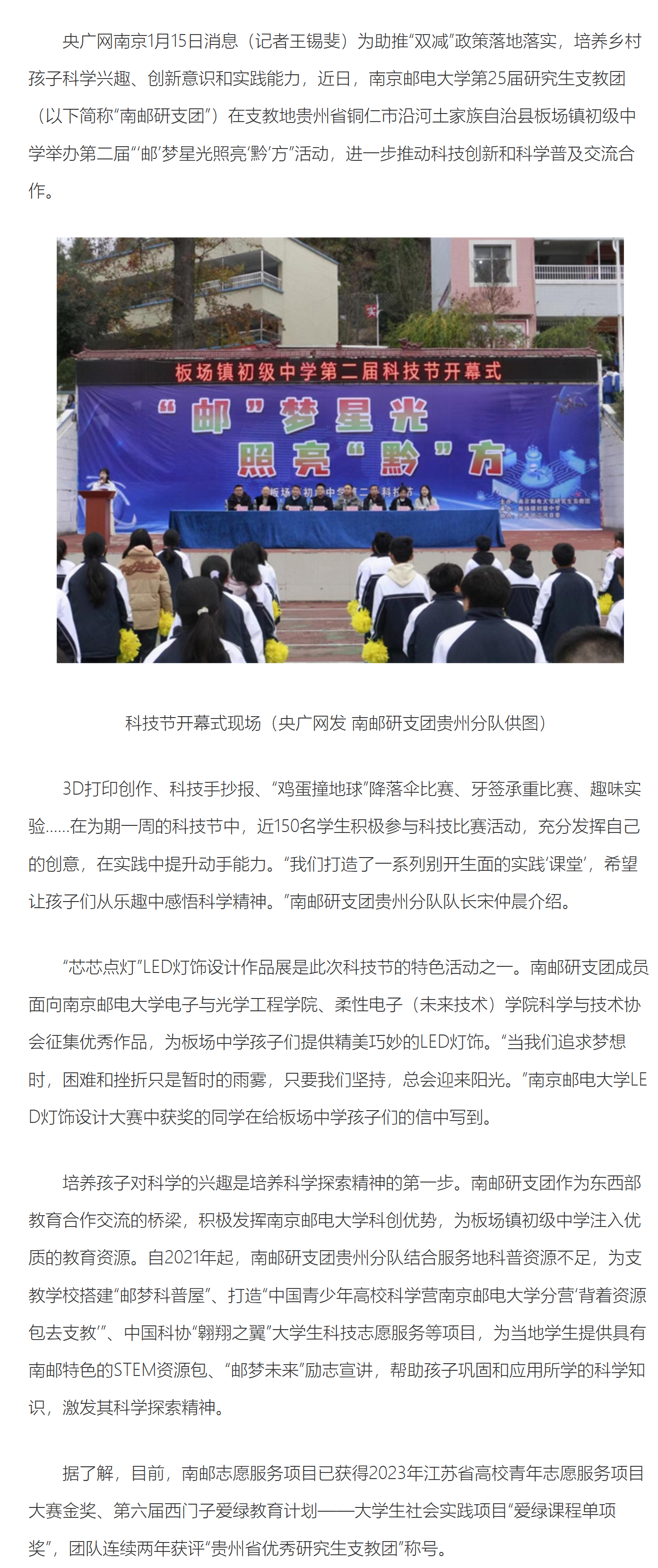 【央广网】南邮研究生支教团为板中学子“插上科技腾飞的翅膀”