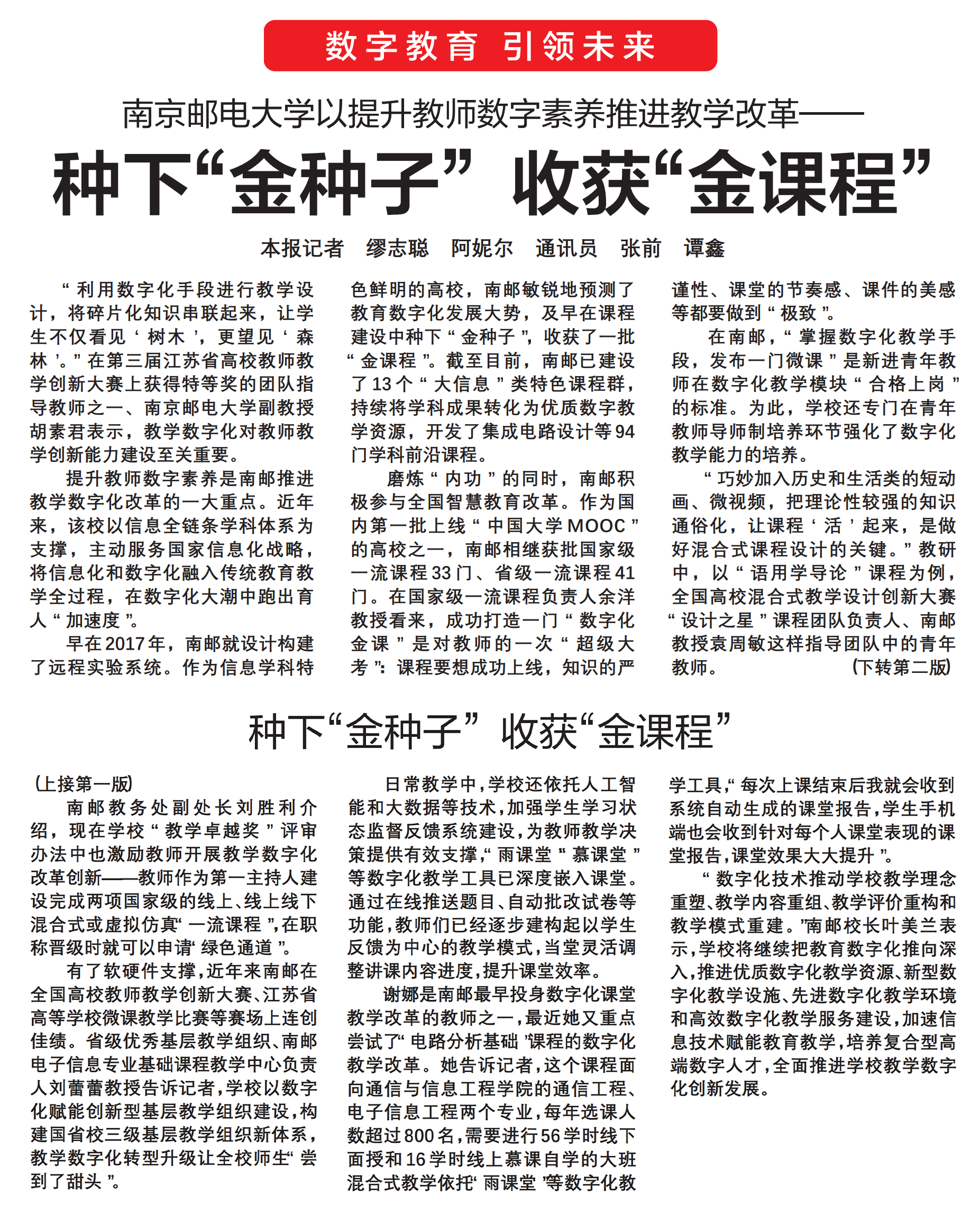 【中国教育报头版】南京邮电大学以提升教师数字素养推进教学改革—— 种下“金种子”收获“金课程”