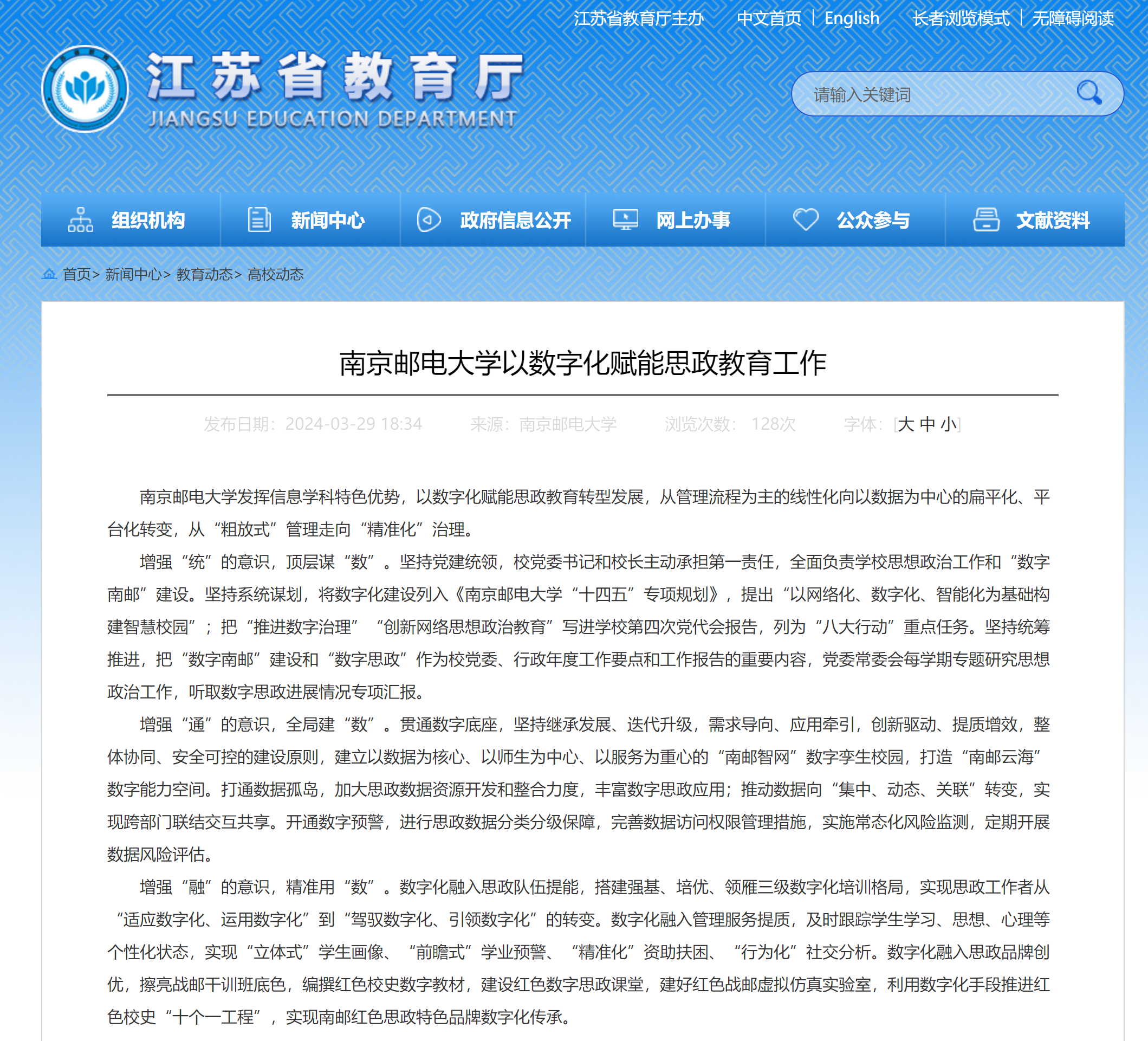 【省教育厅官网】南京邮电大学以数字化赋能思政教育工作