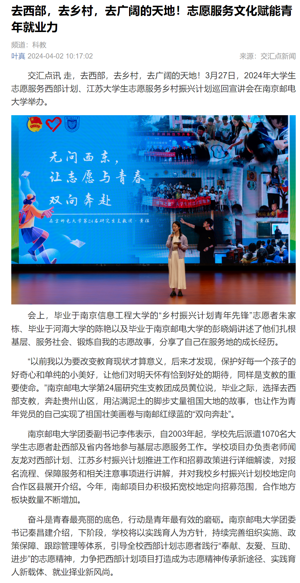 【新华日报客户端】去西部,去乡村,去广阔的天地!志愿服务文化赋能青年就业力