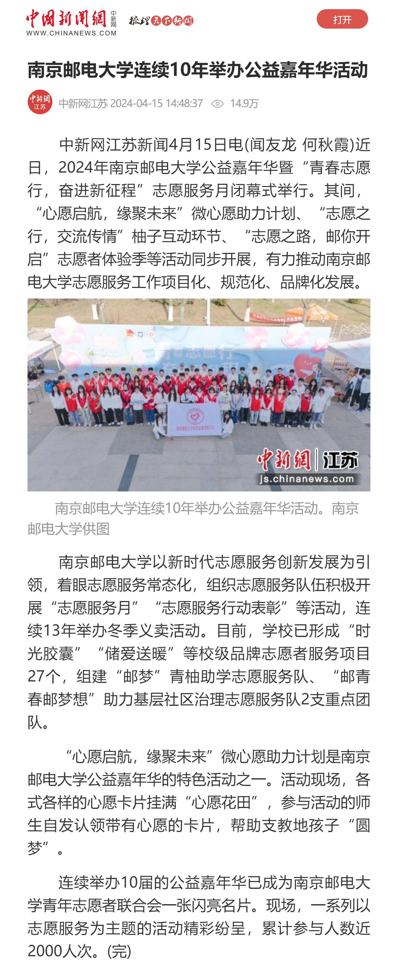 【中国新闻网】南京邮电大学连续10年举办公益嘉年华活动