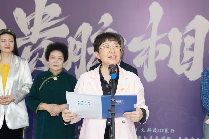 叶美兰校长致欢迎词,对嘉宾们表示热烈欢迎。她说,我国的非物质文化遗产承载着中华民族世代相传的智慧和精神,“不仅是历史的记忆、文化的传承、民族身份的重要标志,更是现代社会多元文化交流互鉴的重要桥梁。”她表示,此次展出既是校企合作的一次文化交流盛会,也是我校美育工作阶段性进展的重要标志,希望此次展出能让参观者了解非遗文化,爱上非遗文化,为非遗文化的传承与发展、为建设文化强国贡献力量。
