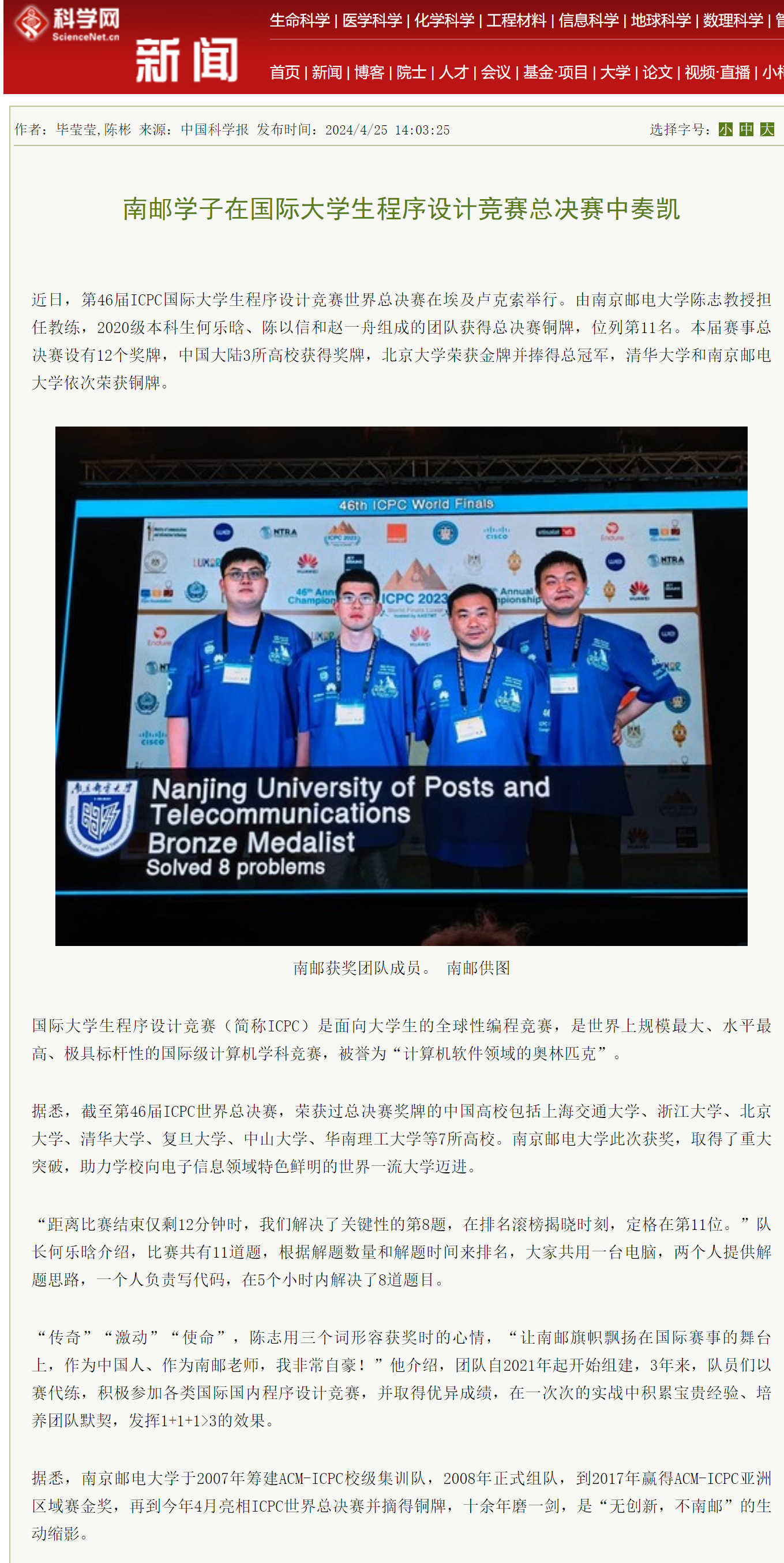【科学网】南邮学子在国际大学生程序设计竞赛总决赛中奏凯