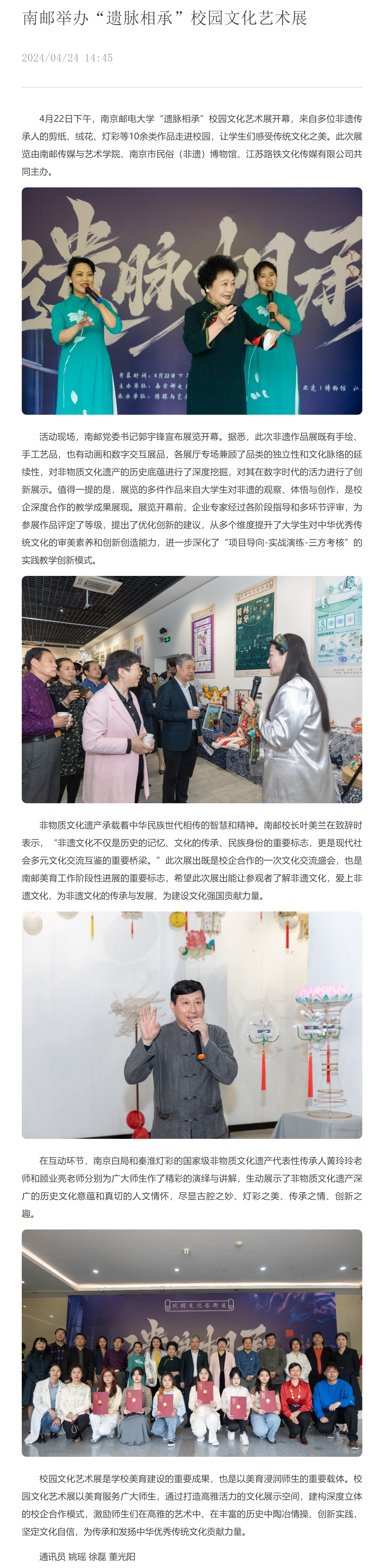 【新江苏客户端】南邮举办“遗脉相承”校园文化艺术展