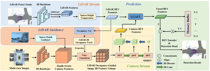 该论文聚焦于多模态3D目标检测,特别是在鸟瞰图(BEV)视角下的应用。研究团队提出了一种名为GAFusion创新方法,通过稀疏深度引导(SDG)和激光雷达占据引导(LOG)生成具有丰富深度信息的3D特征,利用激光雷达引导的自适应融合transformer(LGAFT)从全局角度增强不同模态BEV特征之间的交互。此外,他们还设计了一个BEV网格来存放多尺度下采样特征,并开发了多尺度双路径transformer(MSDPT),以扩大不同模态特征的接受域,显著提高了检测性能。GAFusion有助于自动驾驶领域安全性的重大提升,也为多模态3D目标检测领域后续的研究提供更多的见解。该研究成果同时得到了国家自然基金重点项目课题、国家自然基金面上项目等的支持。