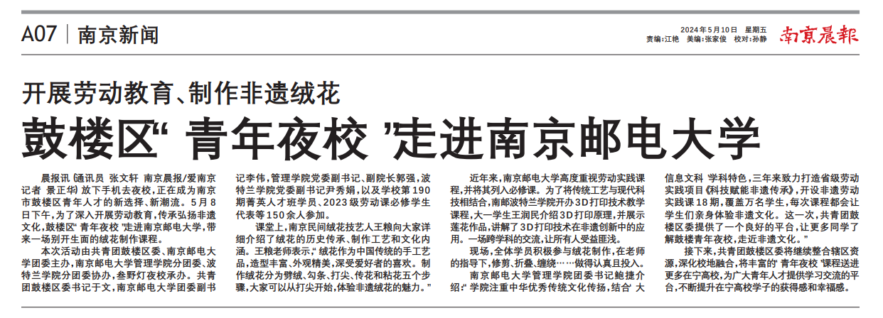 【南京晨报】鼓楼区“青年夜校”走进南京邮电大学