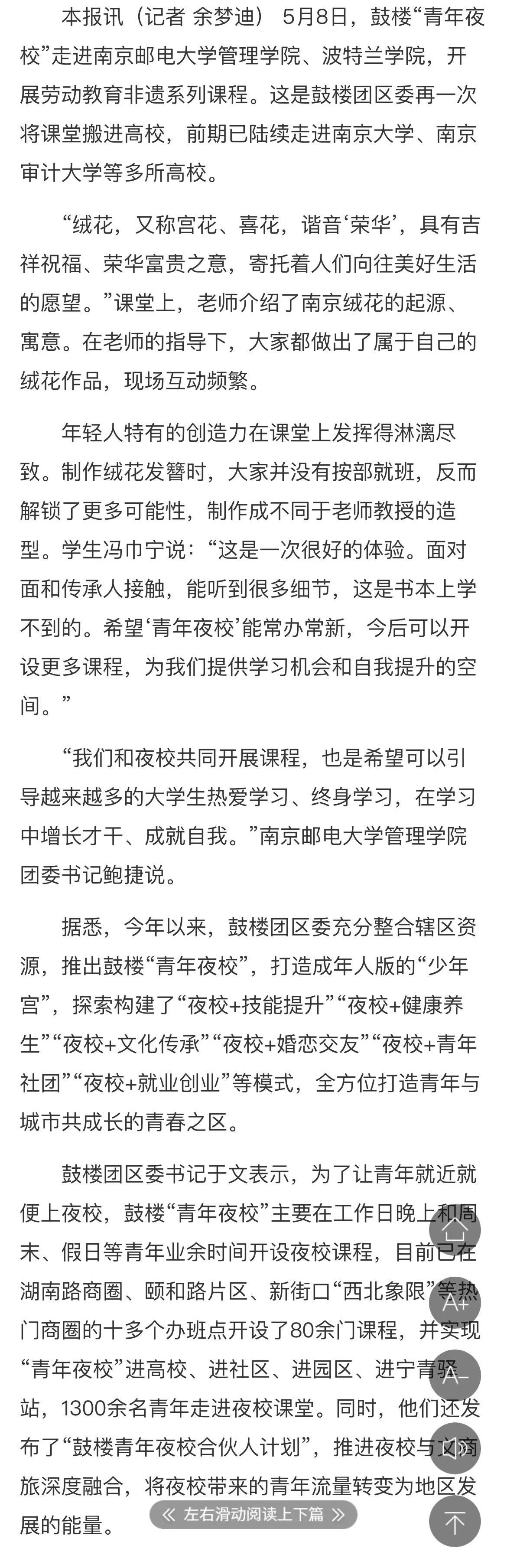 【南京日报】鼓楼“青年夜校” 走进高校开非遗课