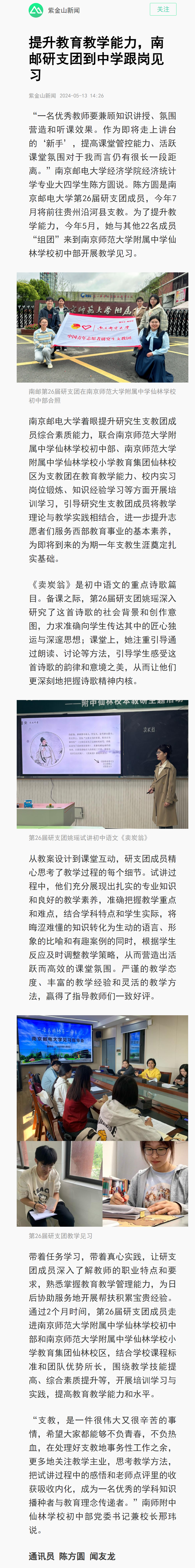 【南京日报客户端】提升教育教学能力,南邮研支团到中学跟岗见习