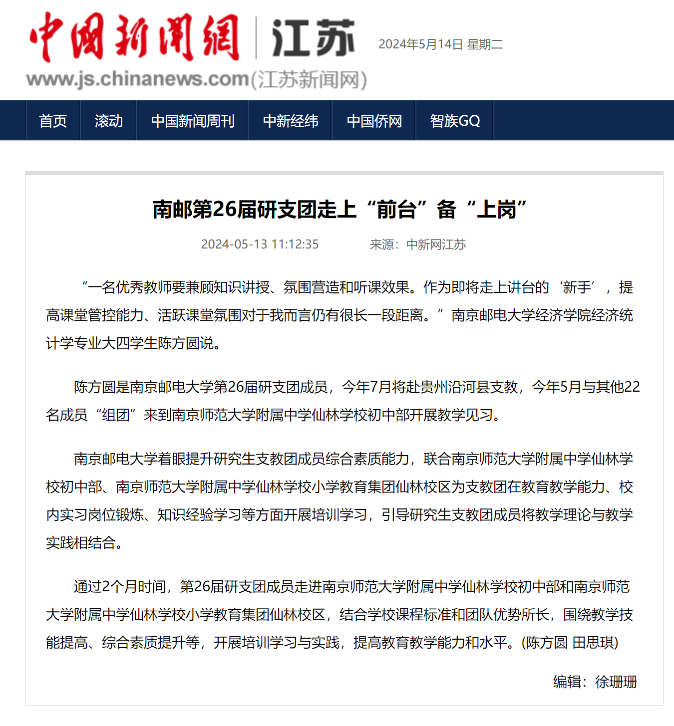 【中国新闻网】南邮第26届研支团走上“前台”备“上岗”