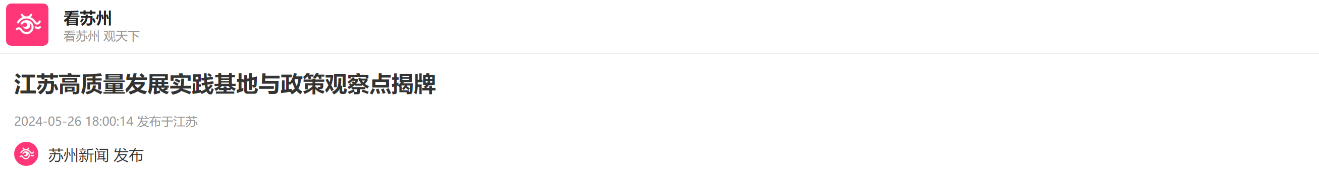 【苏州新闻】江苏高质量发展实践基地与政策观察点揭牌