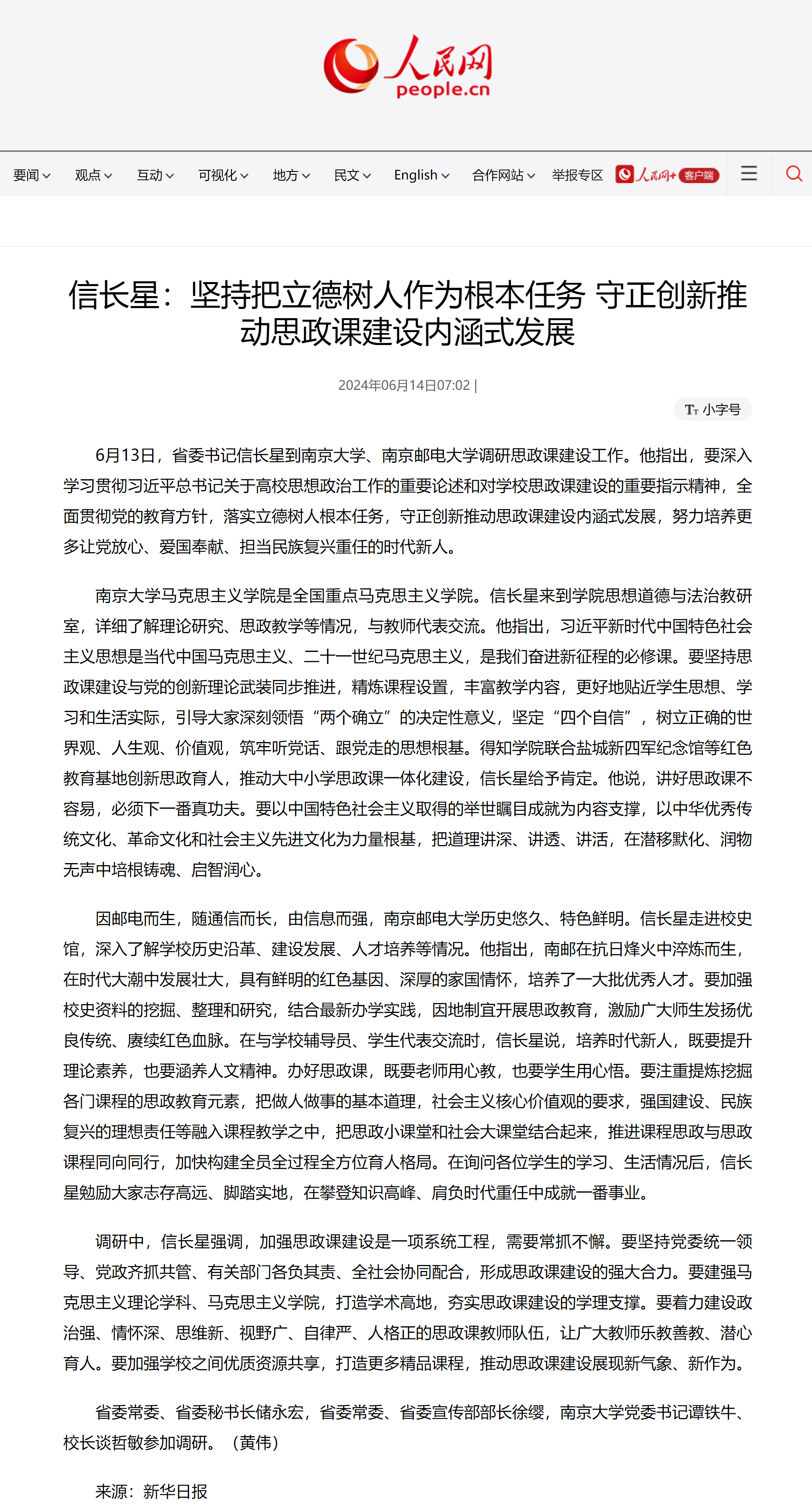 【人民网】信长星:坚持把立德树人作为根本任务 守正创新推动思政课建设内涵式发展