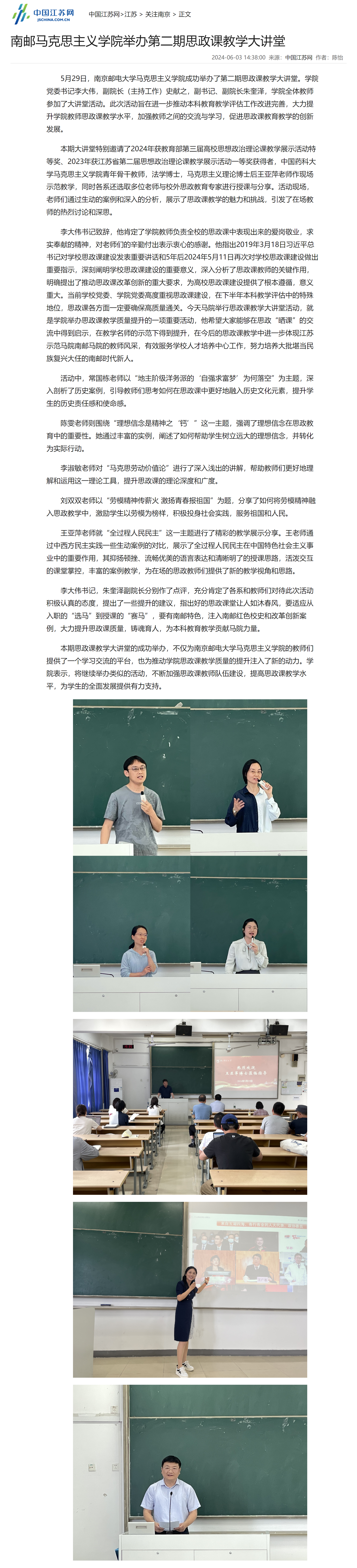 【中国江苏网】南邮马克思主义学院举办第二期思政课教学大讲堂