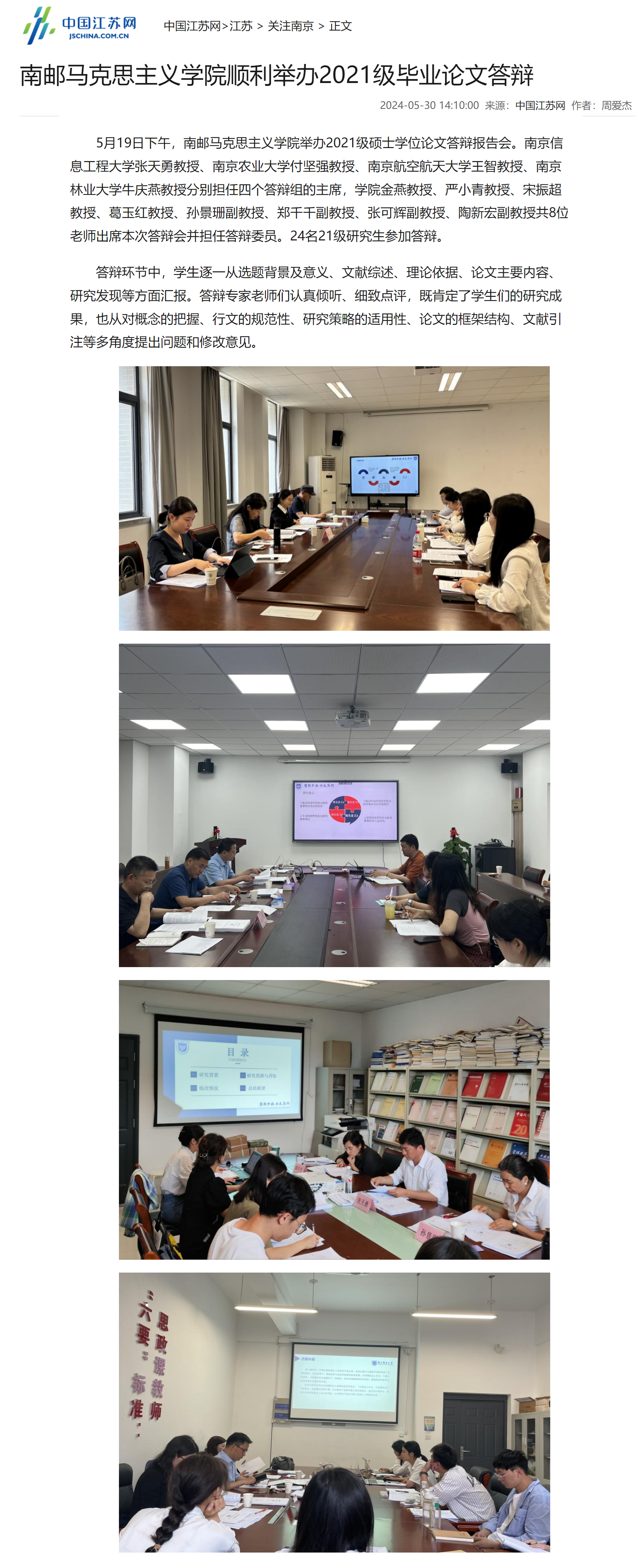 【中国江苏网】南邮马克思主义学院顺利举办2021级毕业论文答辩
