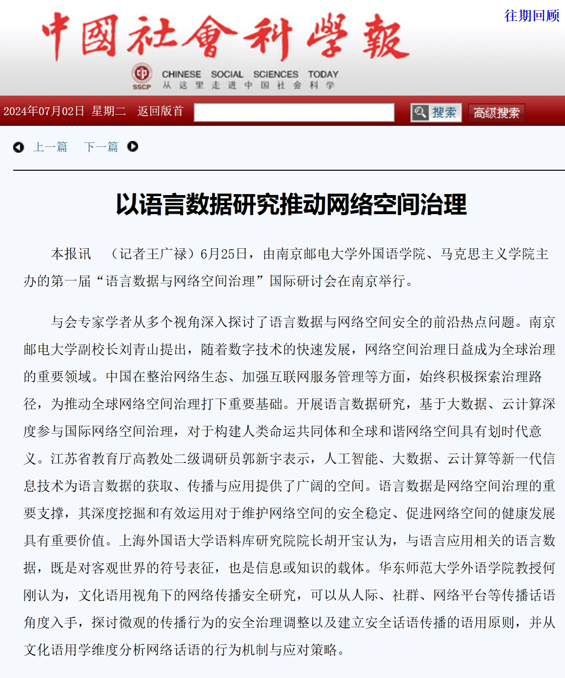【中国社会科学报】以语言数据研究推动网络空间治理